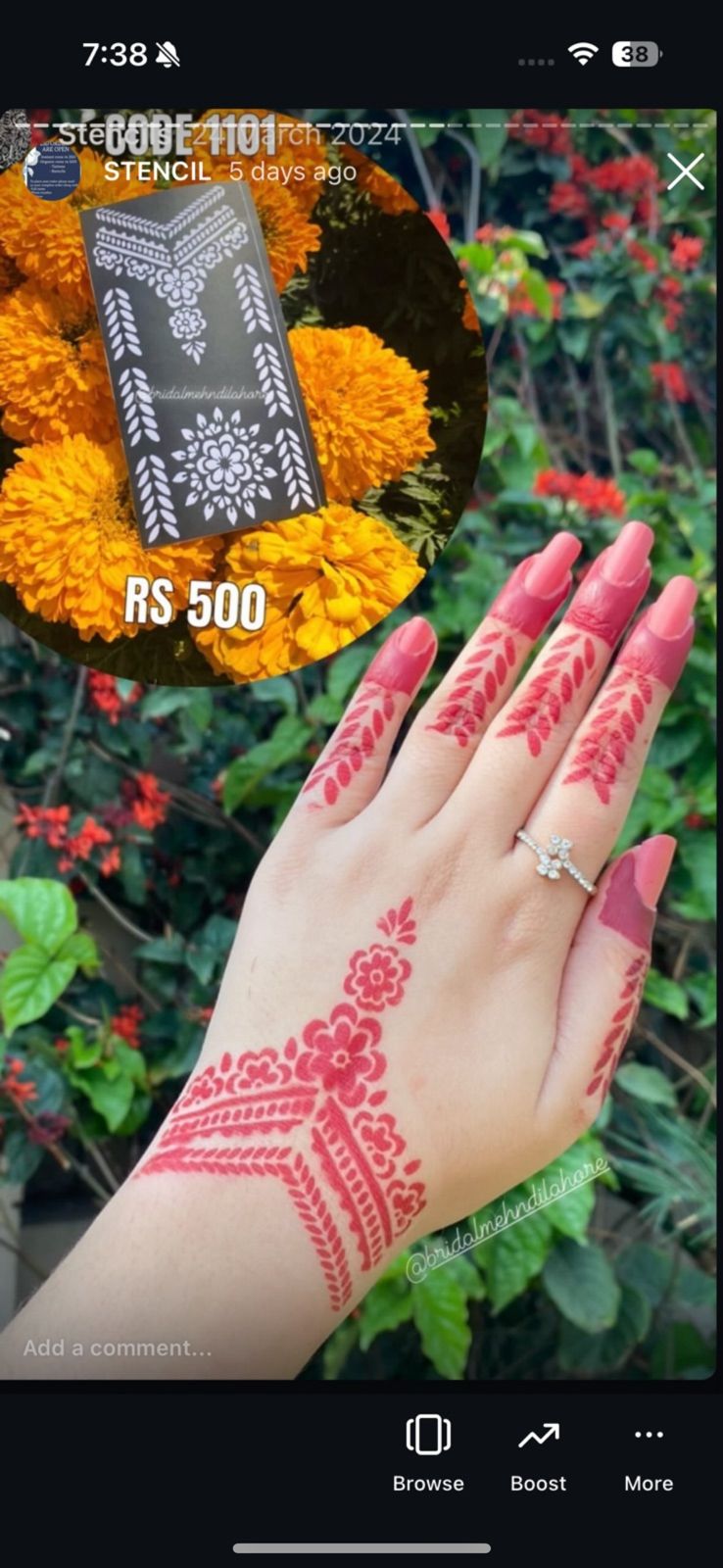 Carefully remove the stencil to reveal your perfect mehndi design — ready in minutes!