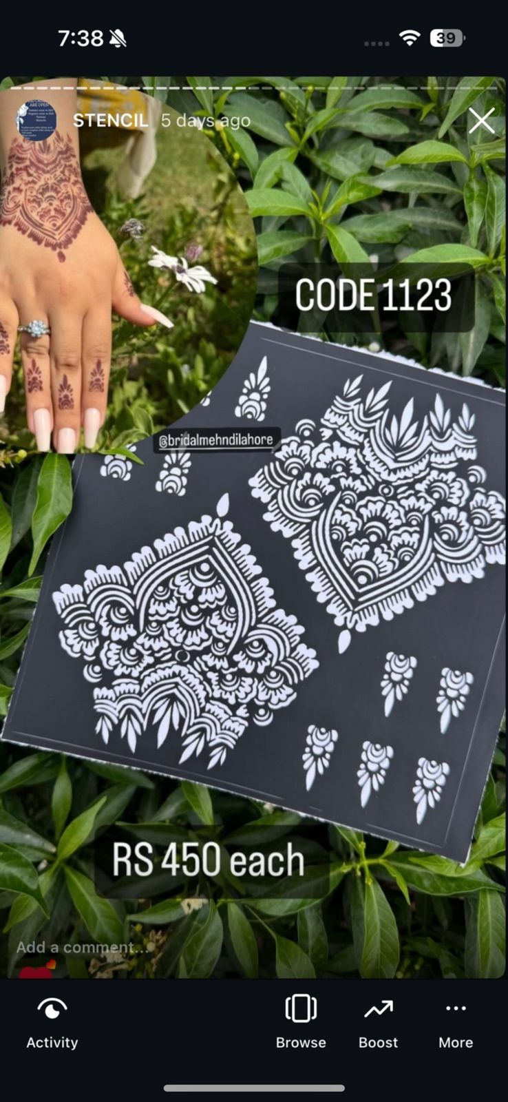 Carefully remove the stencil to reveal your perfect mehndi design — ready in minutes!
