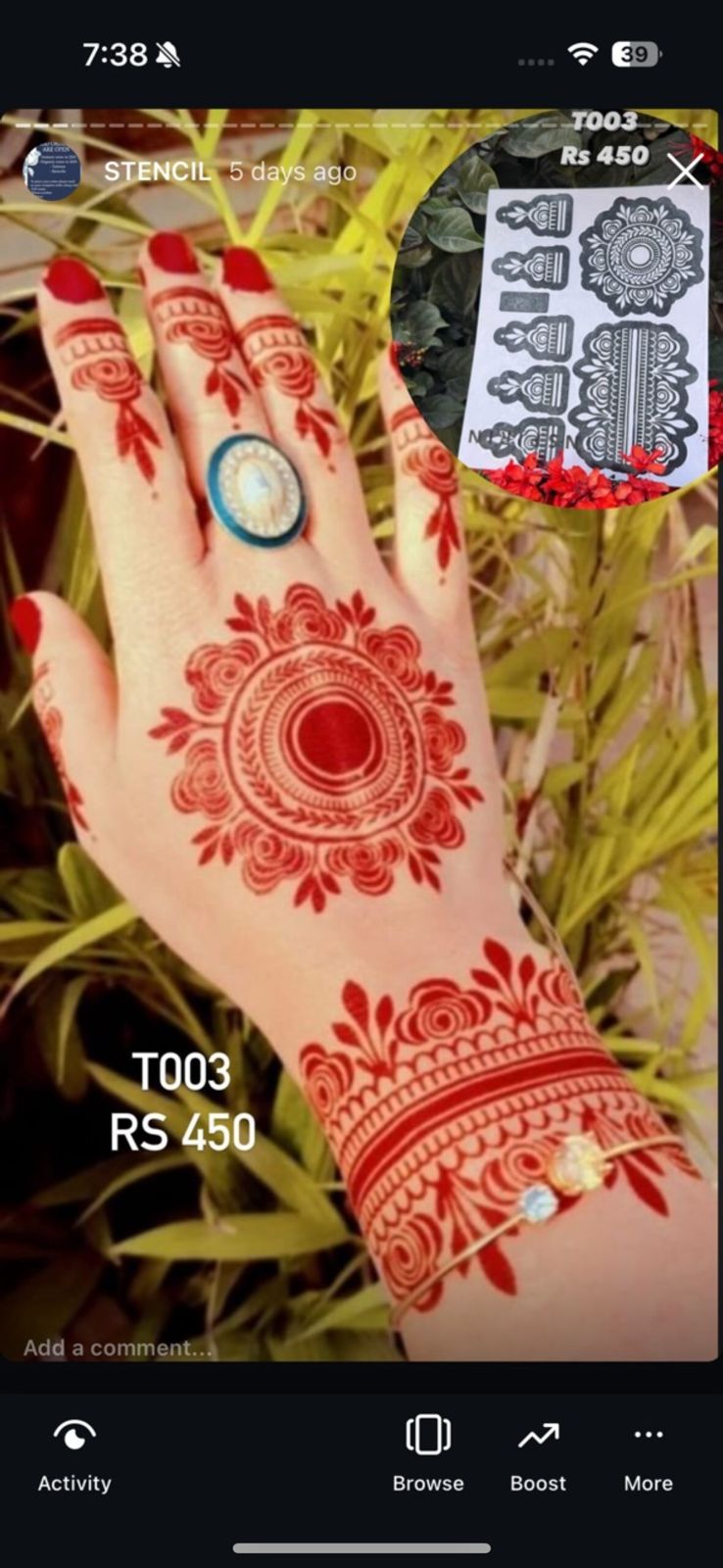 Carefully remove the stencil to reveal your perfect mehndi design — ready in minutes!