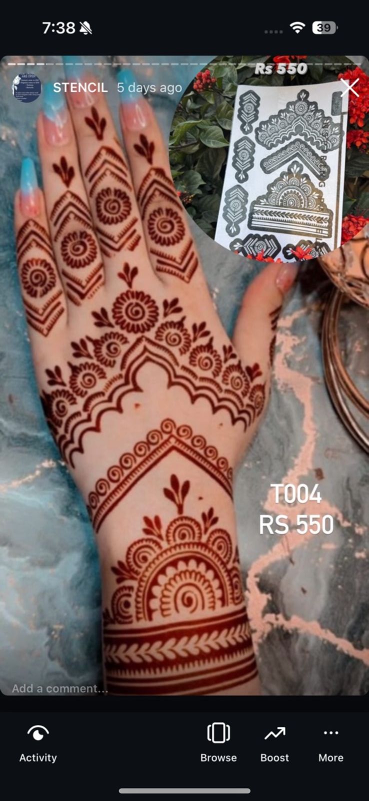 Carefully remove the stencil to reveal your perfect mehndi design — ready in minutes!