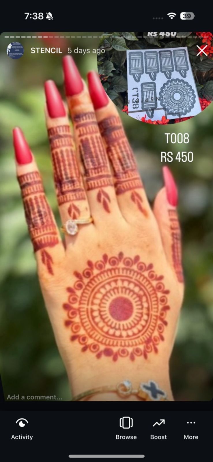 Carefully remove the stencil to reveal your perfect mehndi design — ready in minutes!